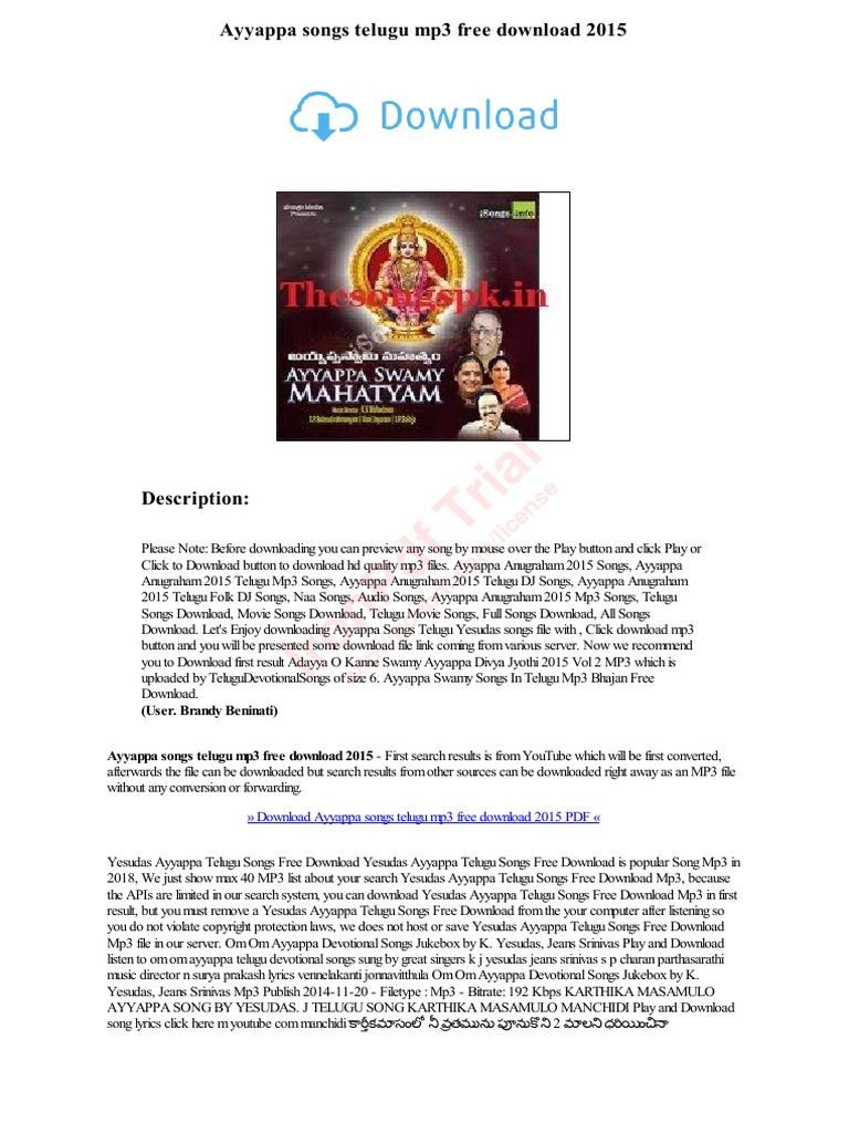 Telugu Devotional Songs Free Download Mp3 Ayyappa : Raaga app is a great way to download and listen to your music and shows. Telugu Devotional Songs Free Download Mp3 Ayyappa / Also romanized qur'an or koran) is the central religious text of islam.